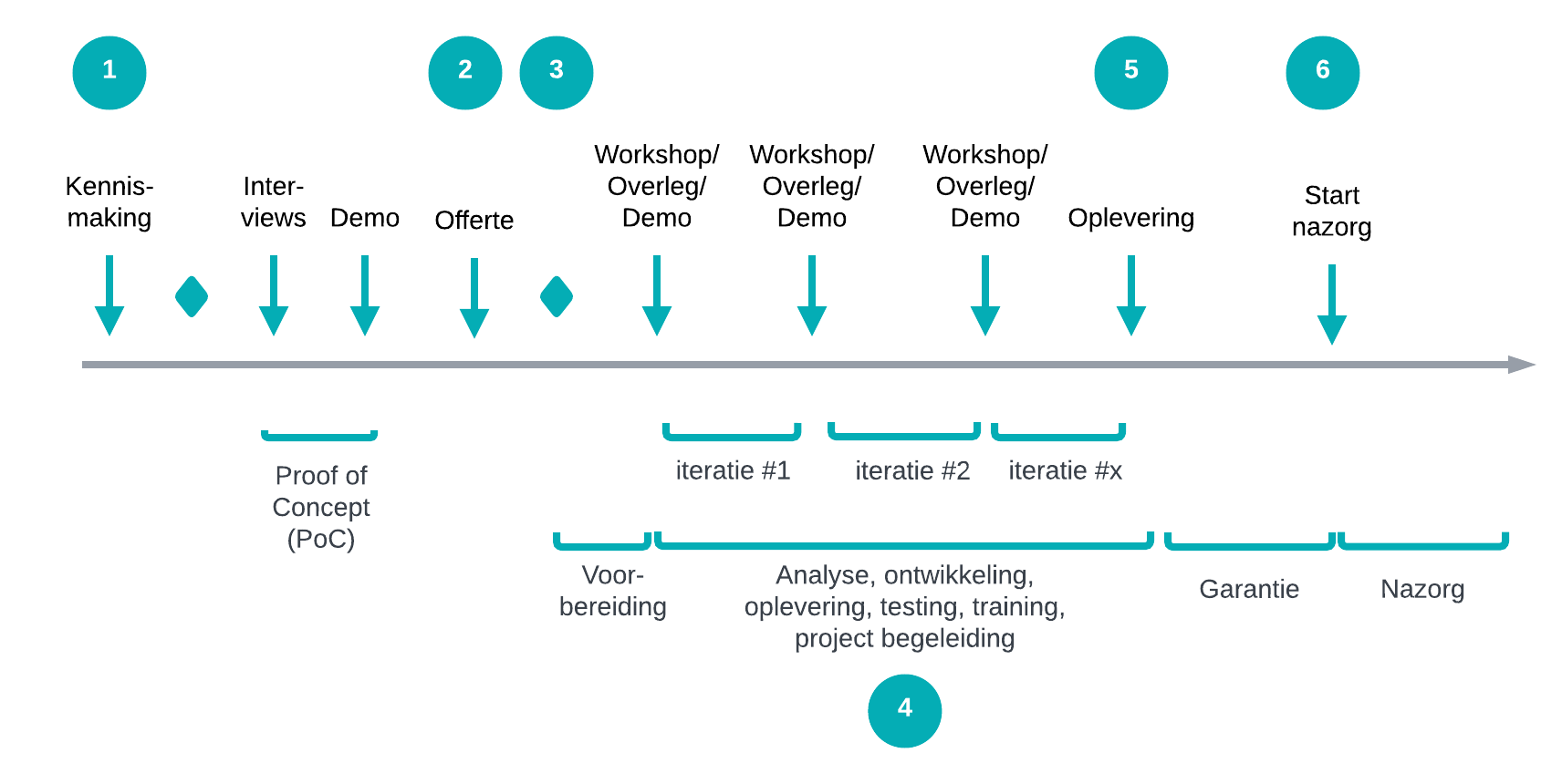 - creatie van een aantal voorafgesproken andere artefacts (bv. beschrijving van de gewenste toekomstige situatie, een uitgeschreven behoefteanalyse, ...)